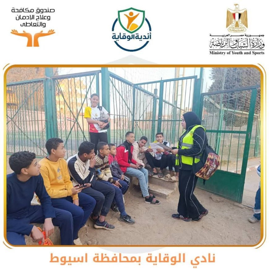 وأوضح محافظ أسيوط أن أندية الوقاية من الإدمان تواصل أنشطتها من خلال الإدارة المركزية لمراكز الشباب – الإدارة العامة لأنشطة وفعاليات مراكز الشباب، في إطار التعاون المشترك بين وزارة الشباب والرياضة وصندوق مكافحة وعلاج الإدمان والتعاطي، حيث شهدت فعاليات هذا الأسبوع تنفيذ أنشطة توعوية بعدد من مراكز الشباب، شملت مراكز شباب ناصر، ومنقباد، وبني حسين، وبهيج، وسلام، وشطب، ويعد مركز شباب ناصر المقر الرئيسي لنادي الوقاية من الإدمان بمحافظة أسيوط.